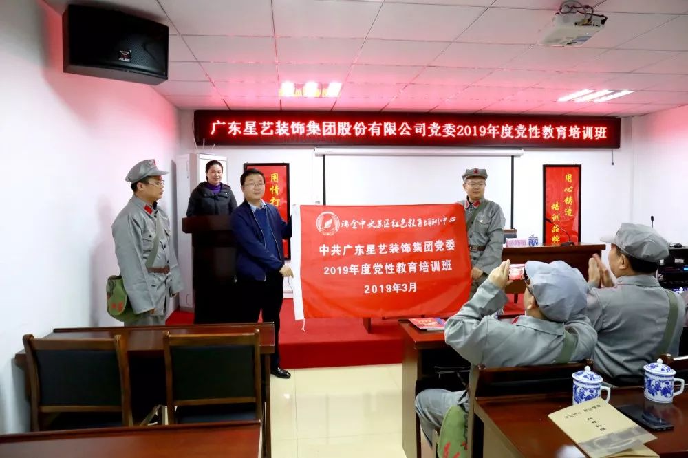 為進(jìn)一步發(fā)揮黨員先鋒模范作用,努力加強(qiáng)企業(yè)黨組織文化建設(shè),發(fā)揮黨員員工在經(jīng)營中的先進(jìn)性作用,引導(dǎo)廣大黨員立足崗位樹先鋒、作表率、爭先進(jìn),弘揚(yáng)主旋律,凝聚正能量,3月23日,中共廣東星藝裝飾集團(tuán)有限公司黨委組織黨員赴江西瑞金開展為期四天的“不忘初心,牢記使命”紅色教育學(xué)習(xí)和拓展。集團(tuán)黨委書記孫師恒,黨委委員黃勇、郝峻、盧邦金、郭曉華,集團(tuán)機(jī)關(guān)黨支部、黃埔公司黨支部10多名黨員參加學(xué)習(xí)班。