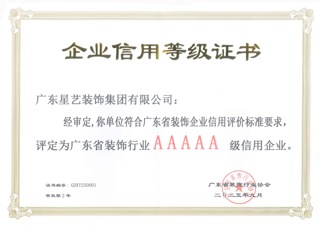 星訊 | 星藝裝飾——廣東省裝飾行業(yè)AAAAA級信用企業(yè)