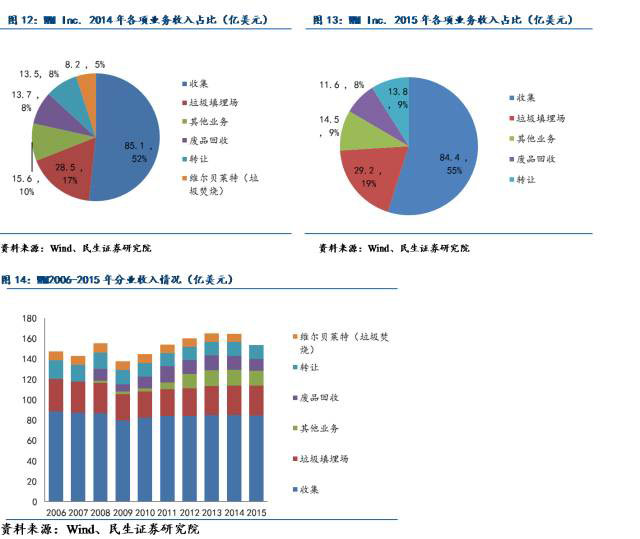 據公司2015年年報披露,于法國當地,公司通過垃圾收集、運輸以及處理所簽署的訂單合同預計累計收益達到了1.29億美元,在歐洲其他國家簽訂相關合同預計累計收益可達9.83億美元。